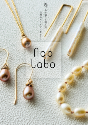 NaoLabo accessoryでは、淡水パールと天然石を中心としたネックレス・イヤリング・リングなどを展開しています。