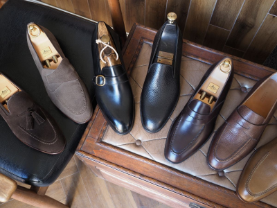 当店ではローファーをはじめとした靴紐のない脱ぎ履きしやすい革靴を専門で製作しています。